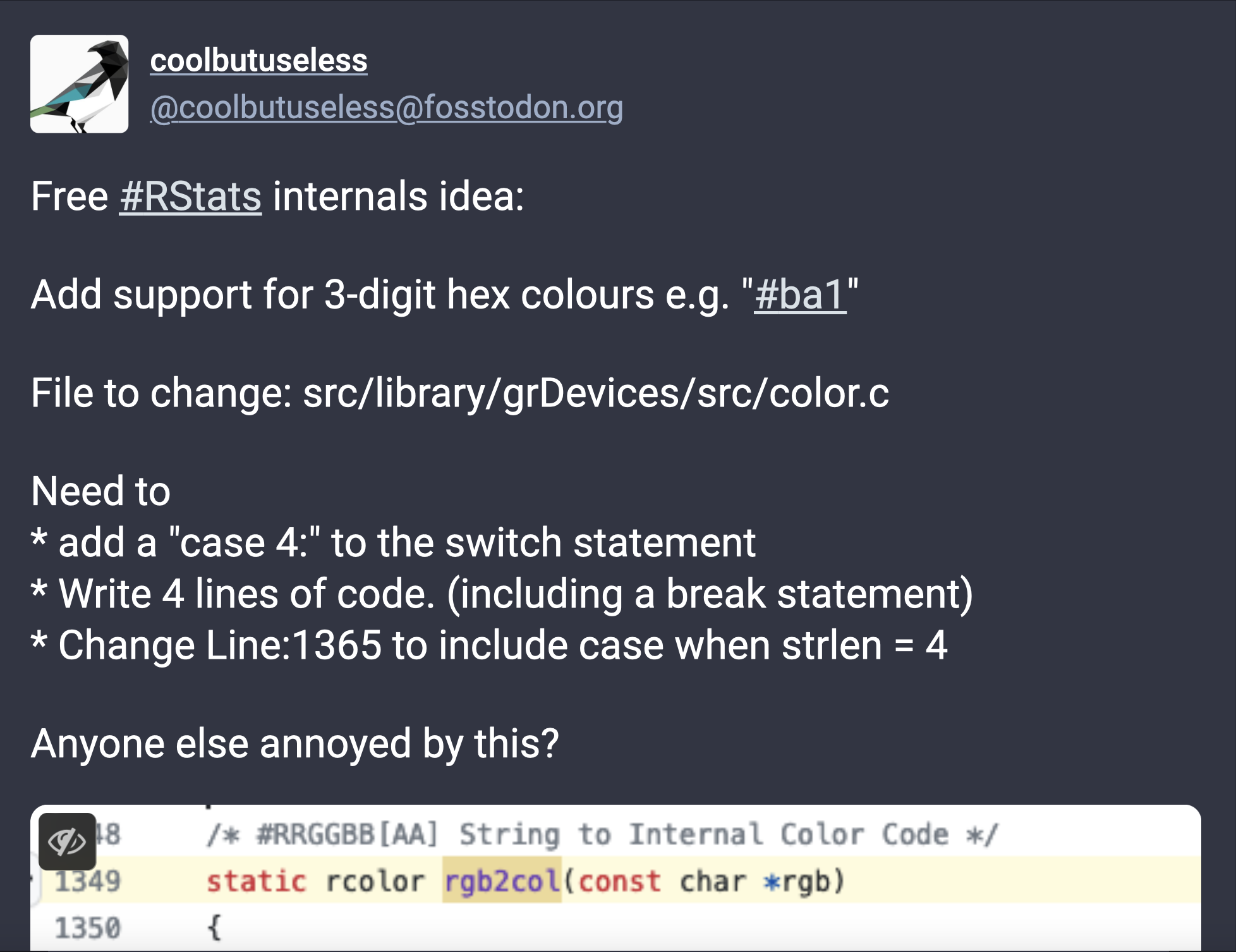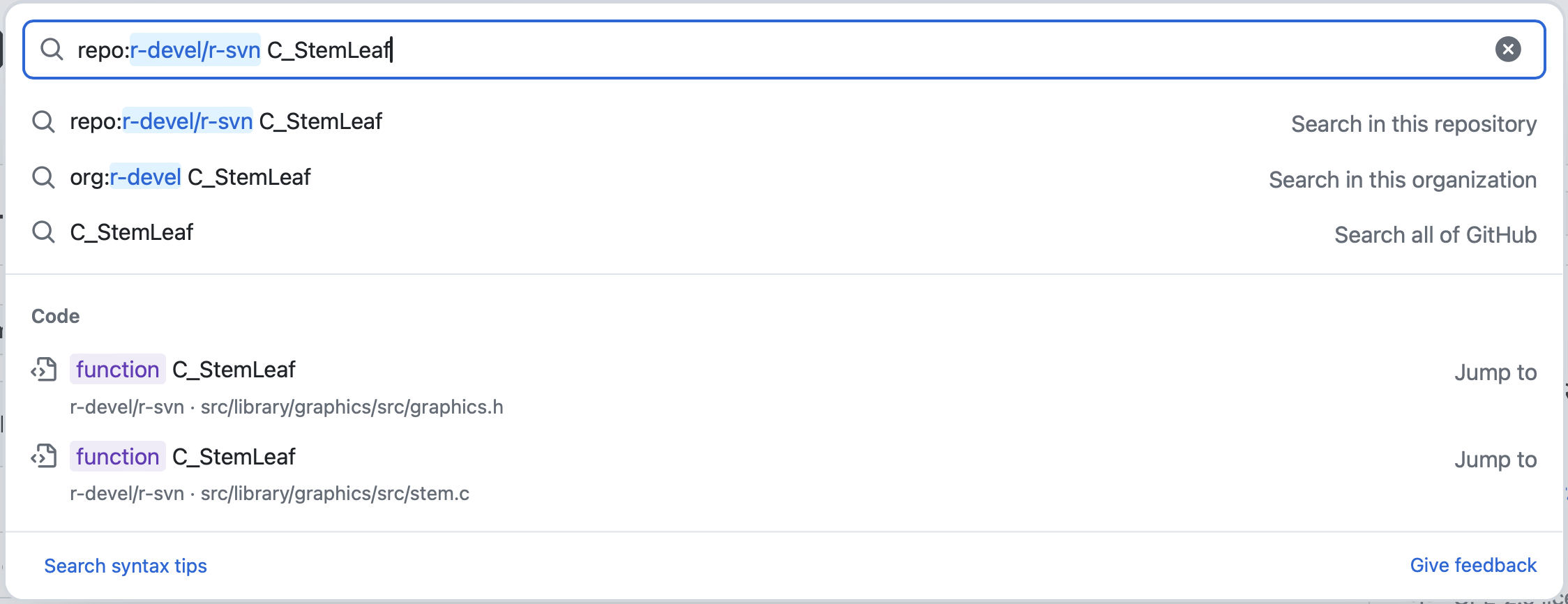 }Error in eval(expr, envir, enclos): object 'C_StemLeaf' not foundC_StemLeaf()R’s C API